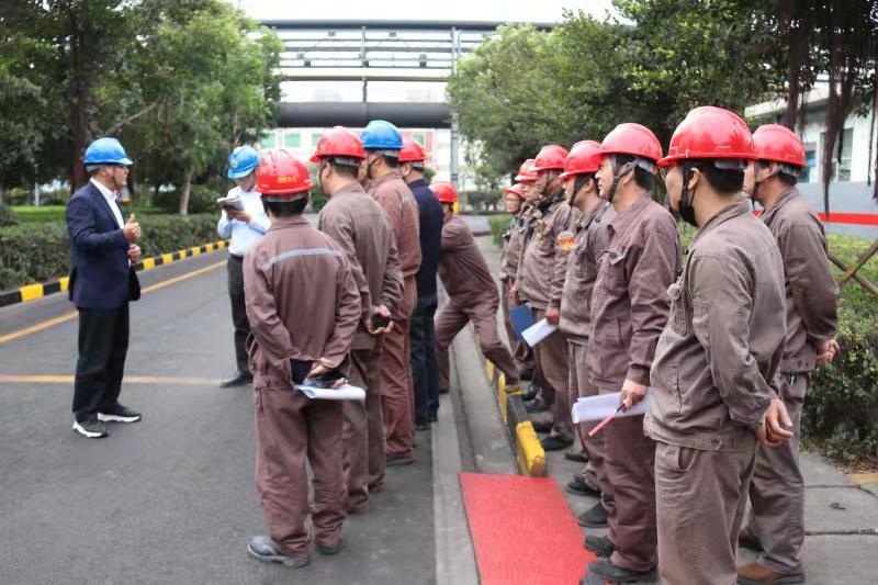 工作现场,柯雪利总经理认真询问设备运行情况、安全措施落实情况、风险防范措施等具体问题,安环部部长林业明等陪同人员针对问题一一作出详细解答。