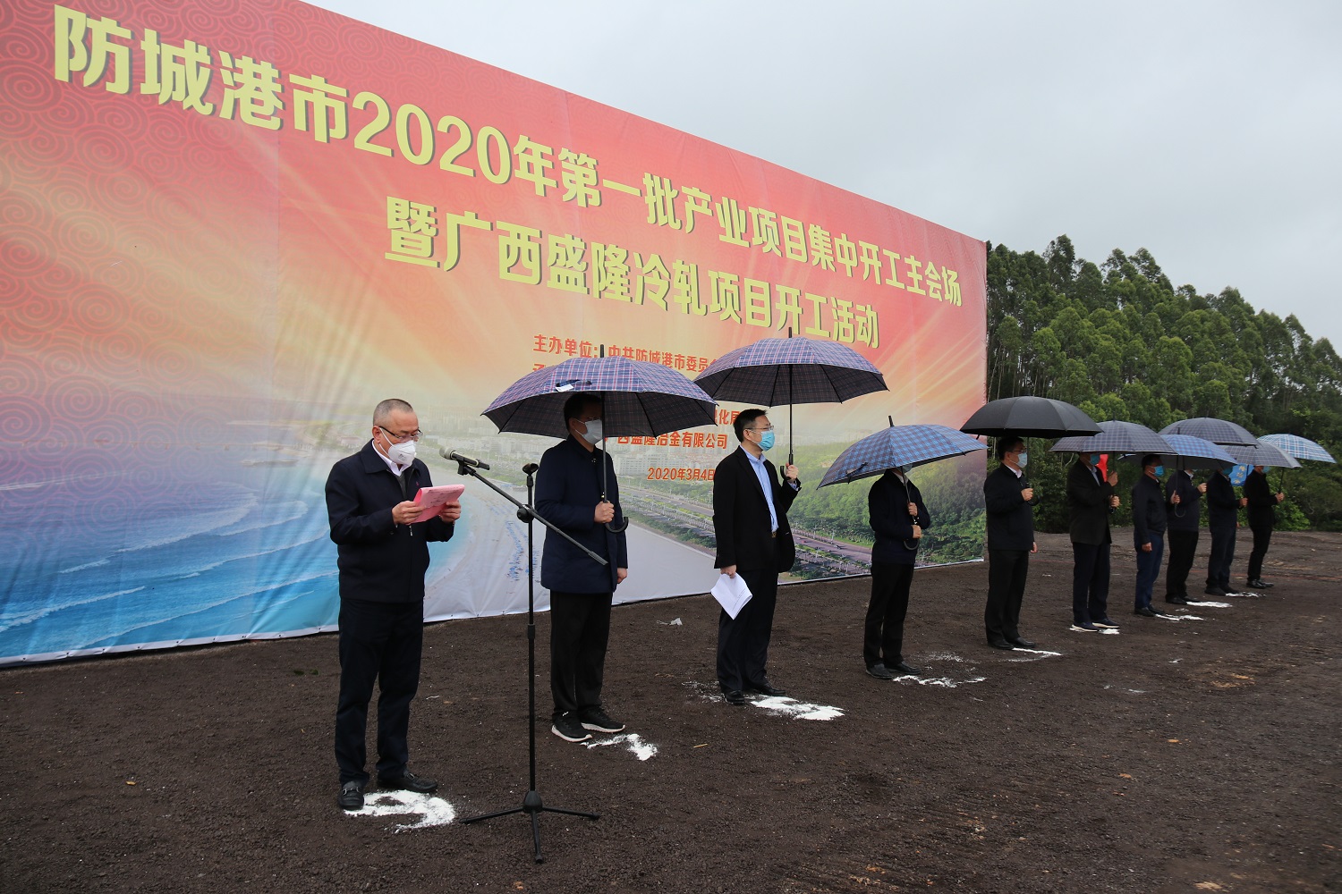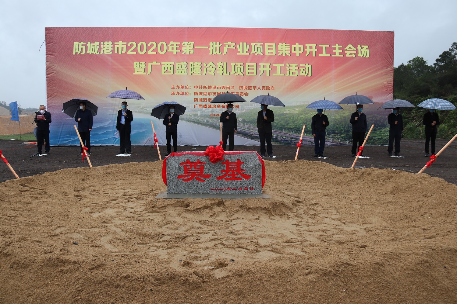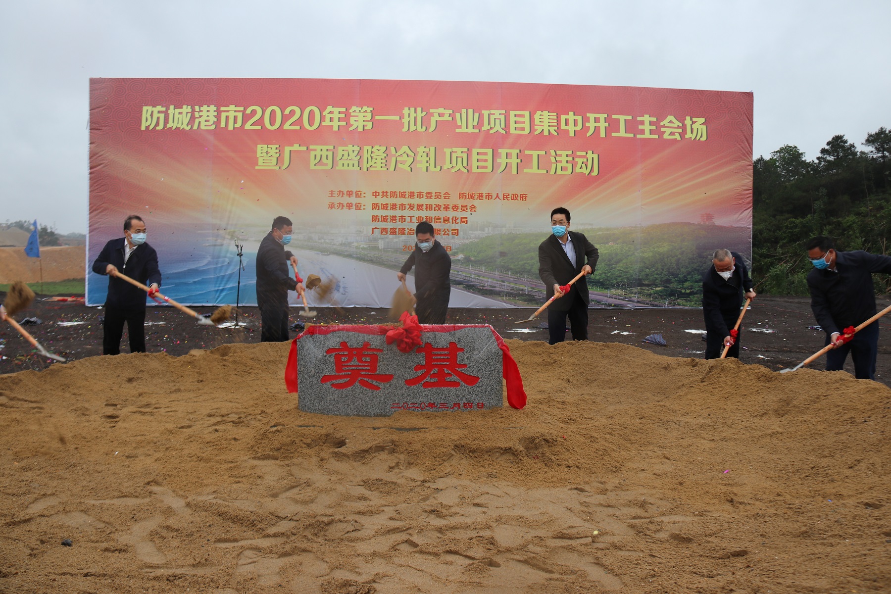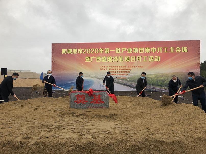3月4日,防城港市举行2020年第一批产业项目集中开工活动。广西盛隆冶金有限公司冷轧项目作为本次集中开工活动主会场项目在项目建设基地隆重举行。市委书记、市人大常委会主任李延强,市委副书记、市长班忠柏等市领导以及公司总经理柯雪利、常务副总经理陈亮等公司领导共同参加本次活动,在齐鸣的礼炮声和掌声中,为盛隆冷轧项目奠下了重要的一土,见证了冷轧项目的历史性时刻。