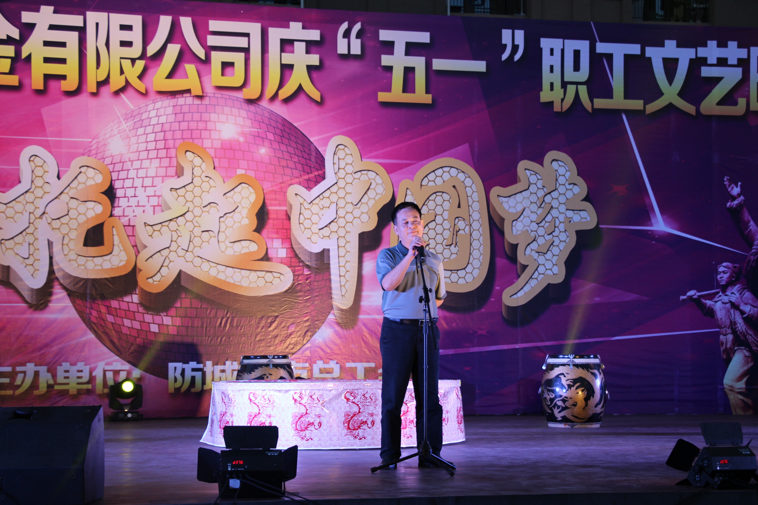 防城港市总工会党组书记、副主席陈雪山,公司常务副总经理陈亮等领导到现场观看了演出并为荣获先进集体和先进个人颁奖。演出开始前,市总工会陈雪山书记、公司陈亮副总均发表了热情洋溢的欢迎词,倡导职工大力弘扬大力弘扬劳模精神,勉励职工奋发向上,并向参加活动的先进集体、先进个人和一线职工致以节日的祝福。