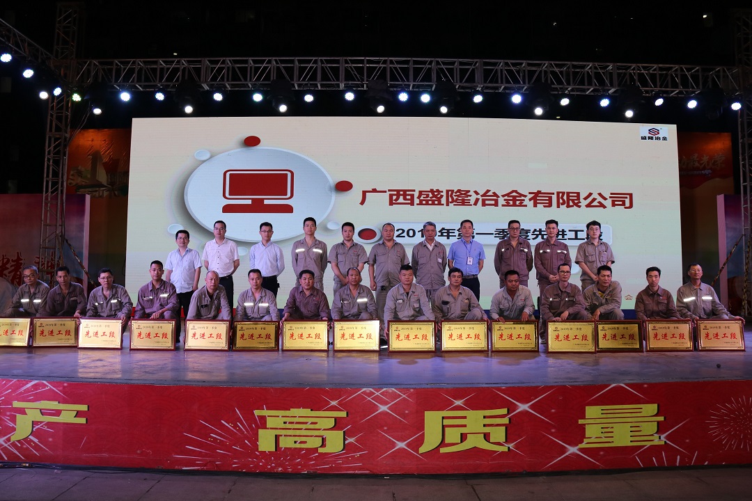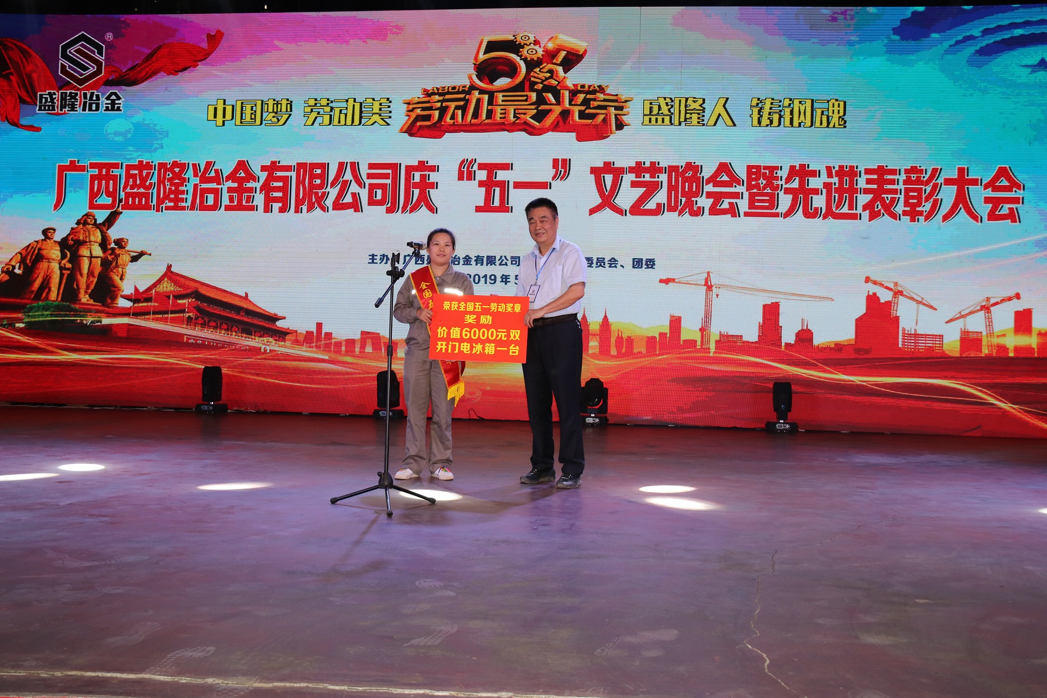 “鸟在高飞、花在盛开、江山壮丽、人民豪迈,我们伟大的祖国进入了社会主义时代……”由我司员工合唱的《祖国颂》激昂嘹亮地拉开了晚会序幕。公司副总经理吕华民上台致辞,肯定并感谢了员工们这一年来为公司付出的辛勤劳动和做出的卓越贡献。晚会表彰了2019年第一季度 “优秀个人”和“先进集体”,隆重表彰了全国五一劳动奖章获得者焦化厂硫铵工段长余丹、广西五一劳动奖章获得者烧结厂技术副厂长许严邦及荣获“广西工人先锋号”称号的炼铁厂6号高炉上料工段。他们用对岗位的坚守诠释着劳动最光荣、劳动最美丽,让我们为新时代劳模点赞,向最美盛隆人致敬。