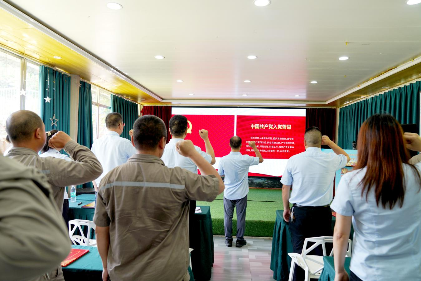 会上,全体与会党员面向鲜红的党旗,庄严举起右拳宣誓,以铿锵有力的誓词彰显对党忠诚,昭示践行初心使命的责任担当。