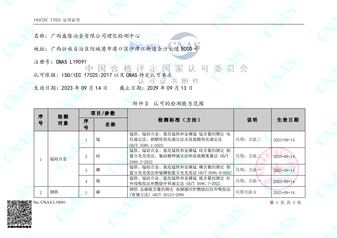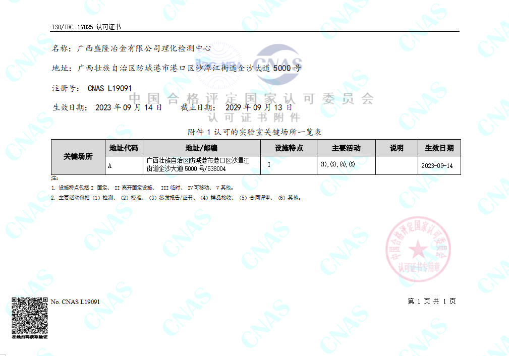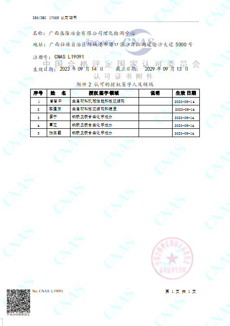 实验室认可证书